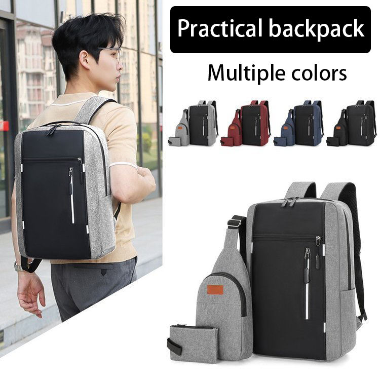 Custom Fashionable 3-piece Set Durable Laptop Backpack Shoulder Chest Bag Pencil Case-waterproof School Bags Usb College Stu