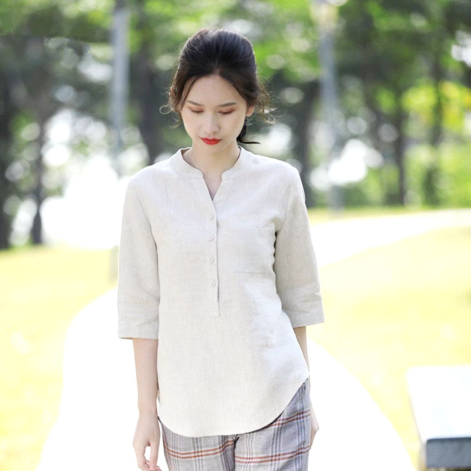 Product Name:Linen Shirt Blouses Half Sleeve Shirt