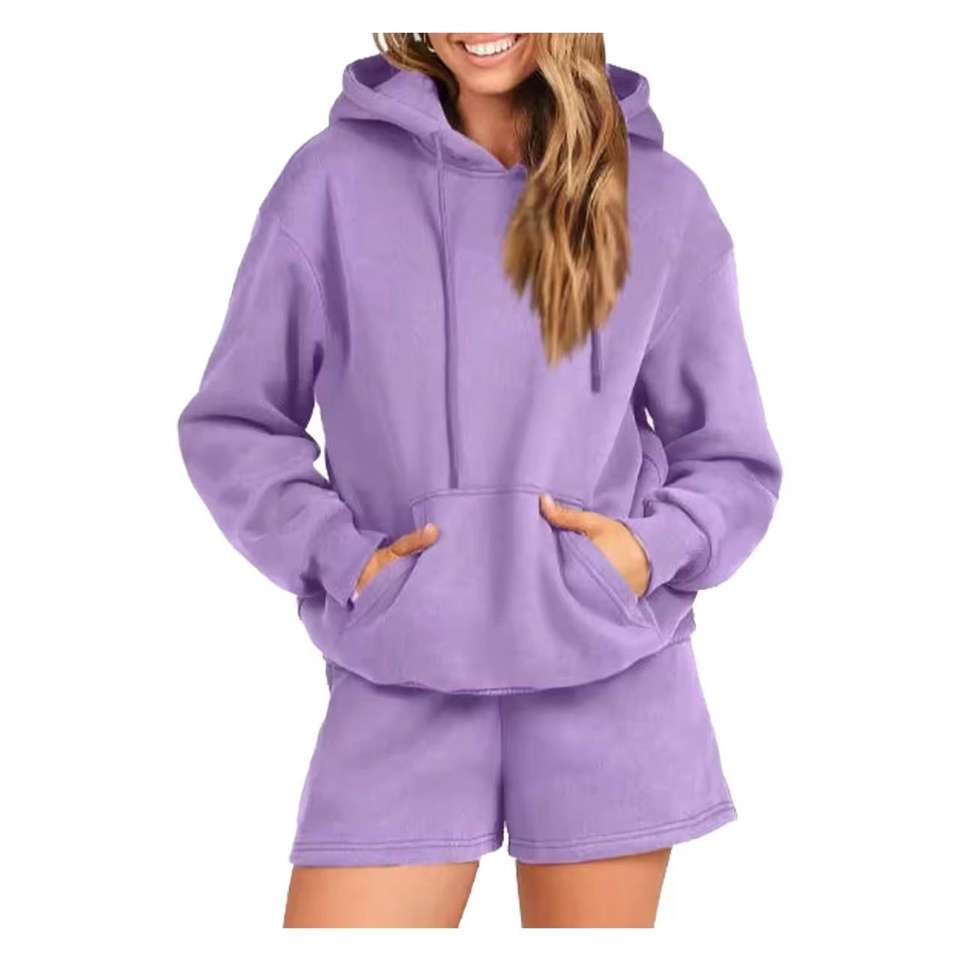 Custom Female Cropped Hoodie and Shorts Set Basics Blank Distressed Streetwear High Quality Women Acid Wash Tracksuit Women