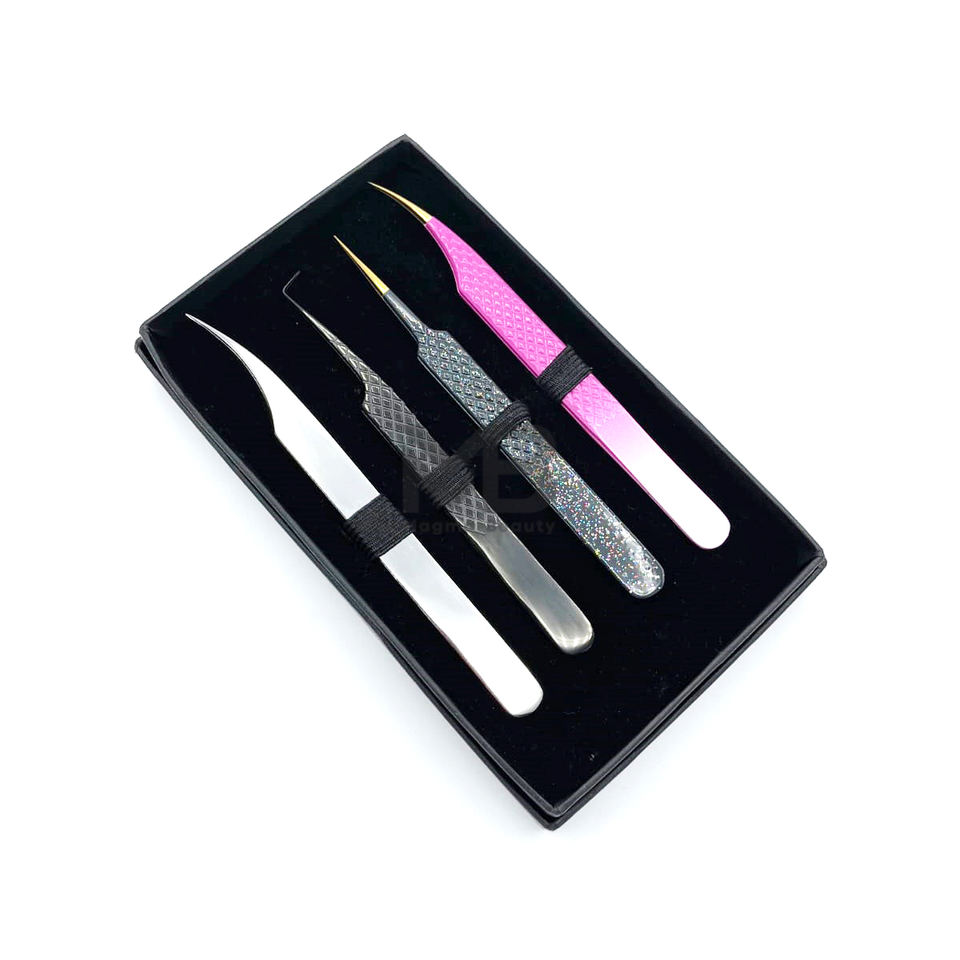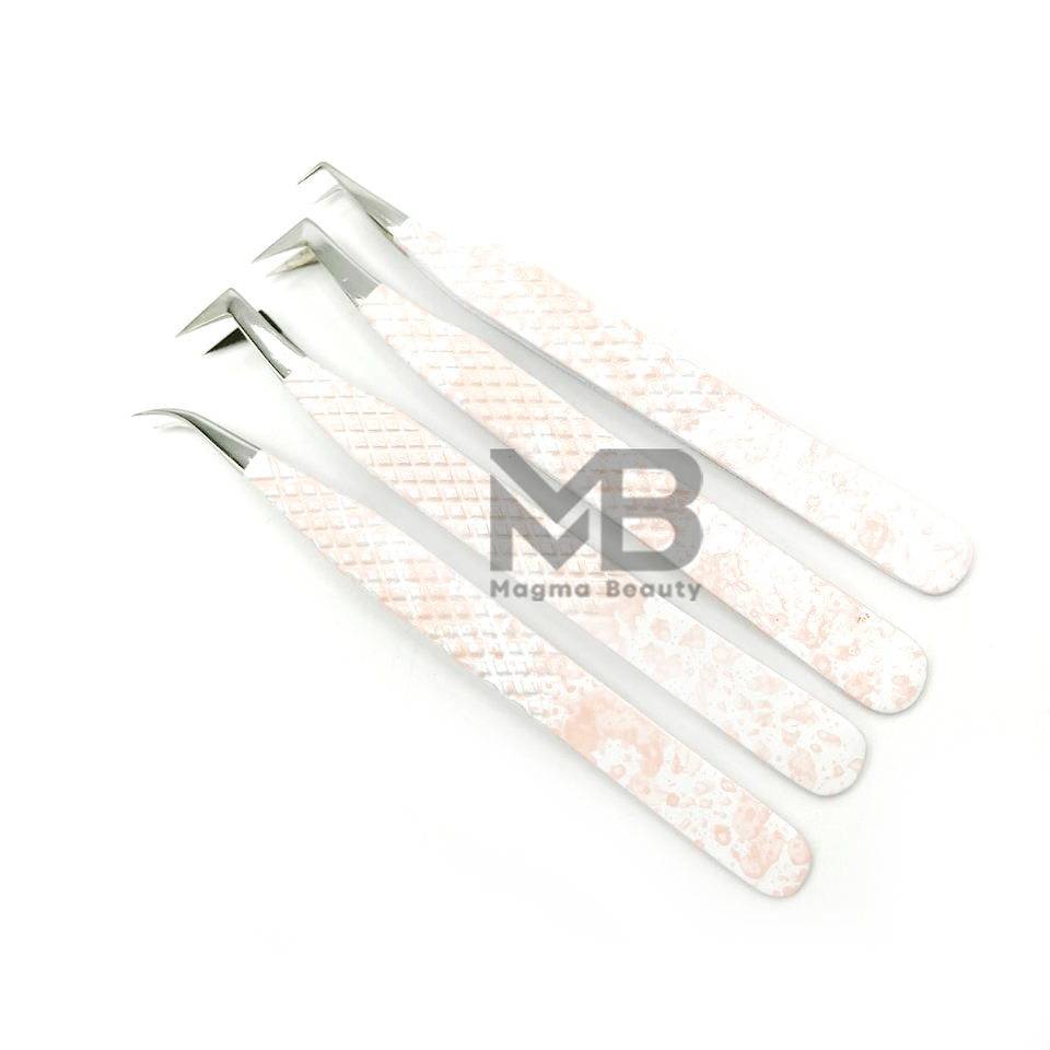 Custom Fiber Tip Volume Lash Extension Tweezers With Charms Isolation Slanted 45 90 Degree Black Pink White Eyelash Tweezers