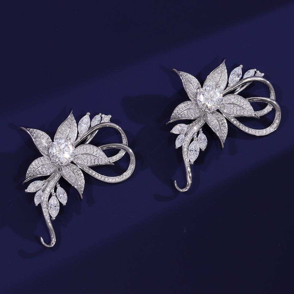 Custom Fine Jewlery 100% 18k Gold Fashion Brooches Vvs1moissanite Diamond Luxury Brooches Women Vintage Designer Flower Brooch