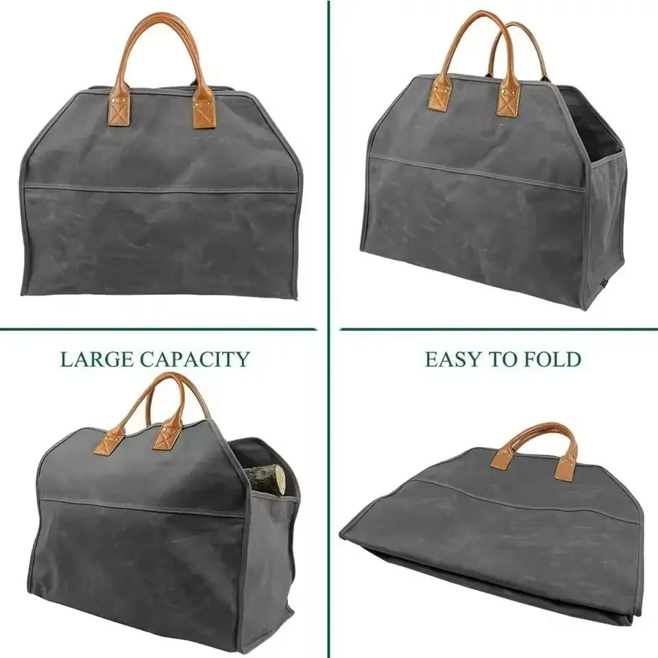Custom Firewood Log Carrier Tote Bag Waxed Canvas Fire Wood Carrying Holder for Indoor Outdoor Camping