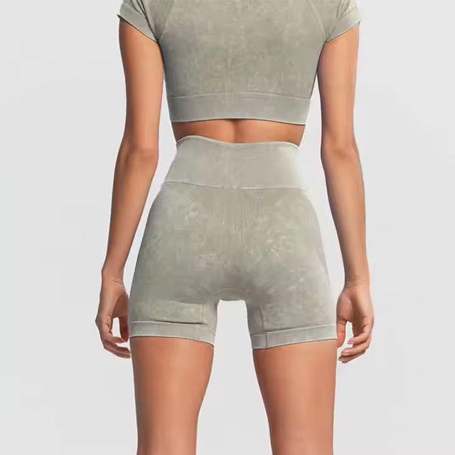 Custom Fit Breathable High Waist Gym Shorts for Women Quick Dry Workout Sports Shorts Stretch Decorative Belt Button Flowers