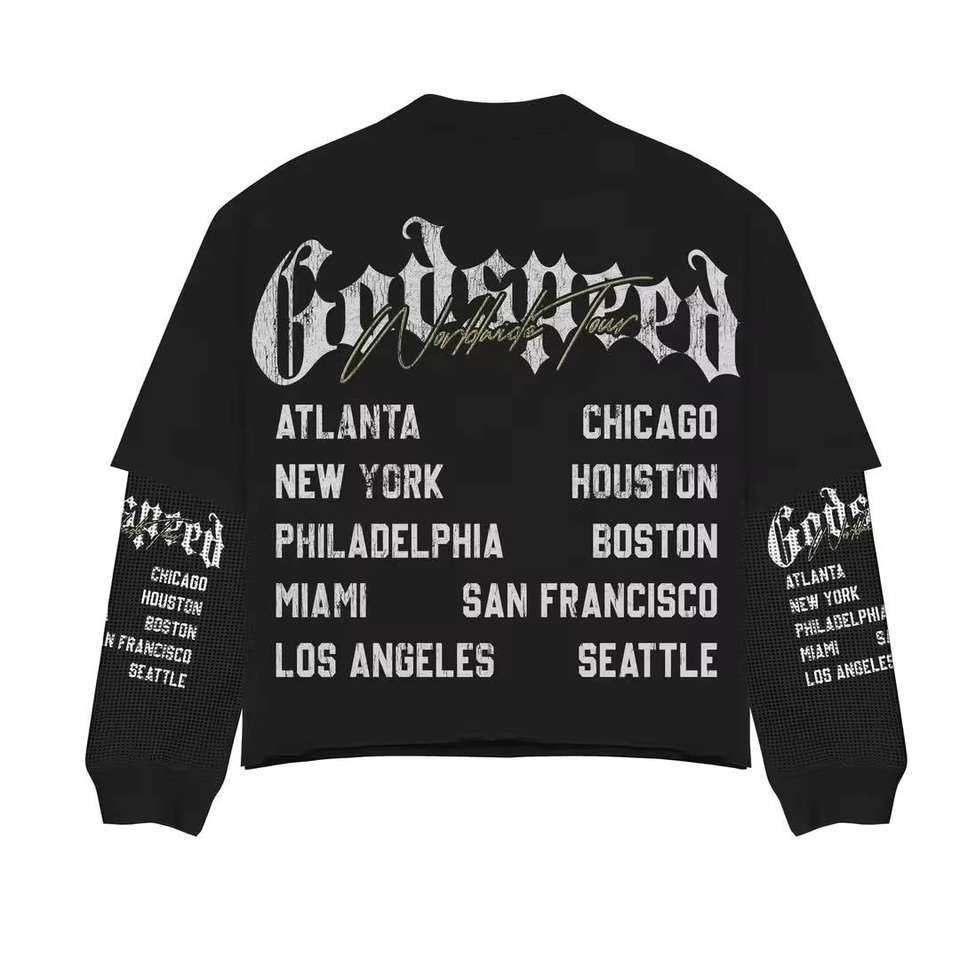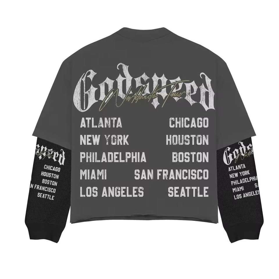 Custom Fit Cropped Oversized Acid Wash Double Layer Long Sleeve T-shirt Heavyweight 300 GSM Graphic Printing Embroidery Logo