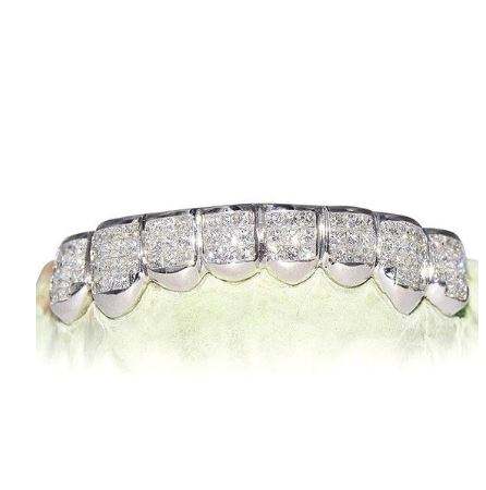 Custom Fit Fine Jewelry Handset 8X8 925 Silver & Gold VVS Moissanite Hip Hop Style Iceout Grillz in Honeycomb Setting for Him