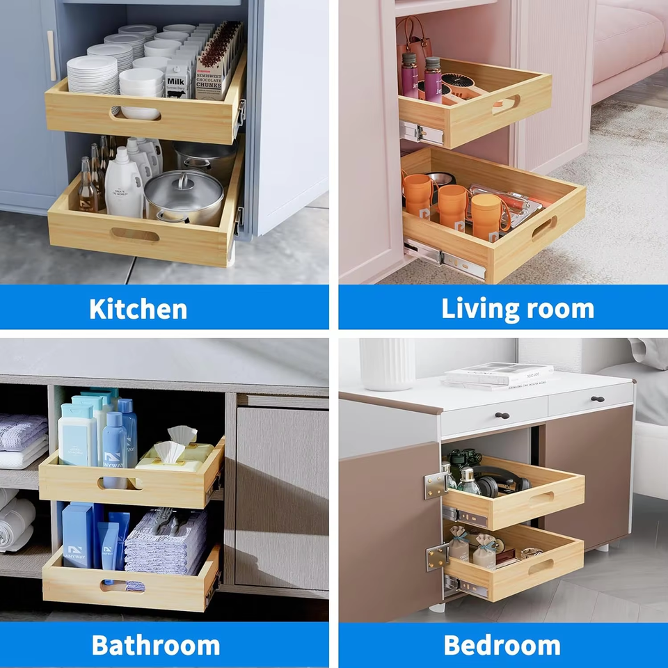 Wooden Pull-Out Storage Organizer Shelves for Kitchen Cabinet Custom Design, OEM/ODM Service, Vietnam Factory, Budget Friendly