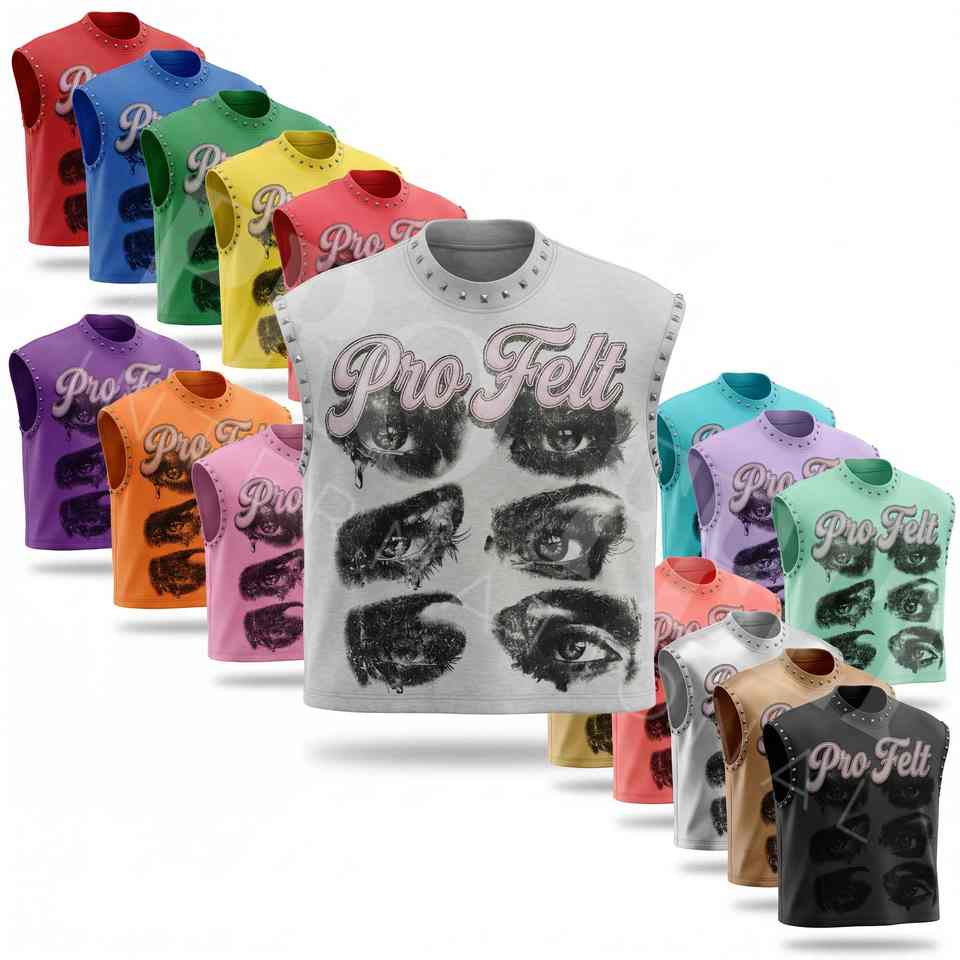 Custom Fitted Boxy Fitted Cropped Style Graphic Sleeveless Tank Top Streetwear Studded Edge Loose Fit Fashion Custom T Shirts