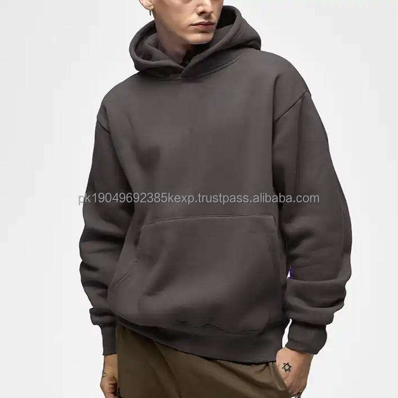 Custom Fleece Hoodie With No String Brown Blank Drop Shoulder 100% Cotton Thick High Quality Oversized Heavyweight Hoodie