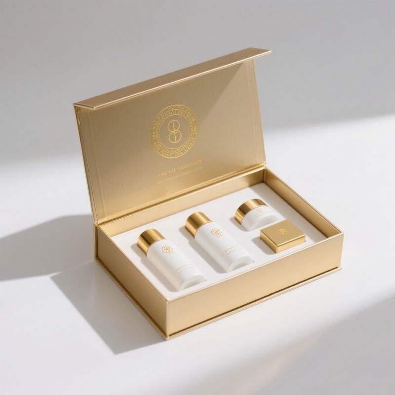 Custom Flip Top Textured Gift Box Magnetic Lid Closure Box Gold Perfume Gift/Skincare Packaging Box with Foam Insert