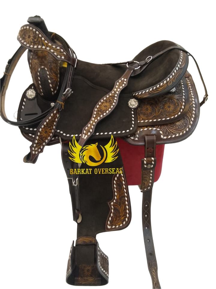 Barkat Overseas Custom Floral Double Toned Roper New Genuine Leather Soft Natural Leather Durable Western Horse Saddle Gel