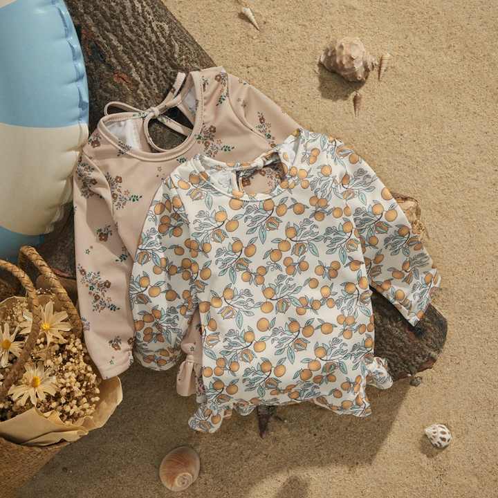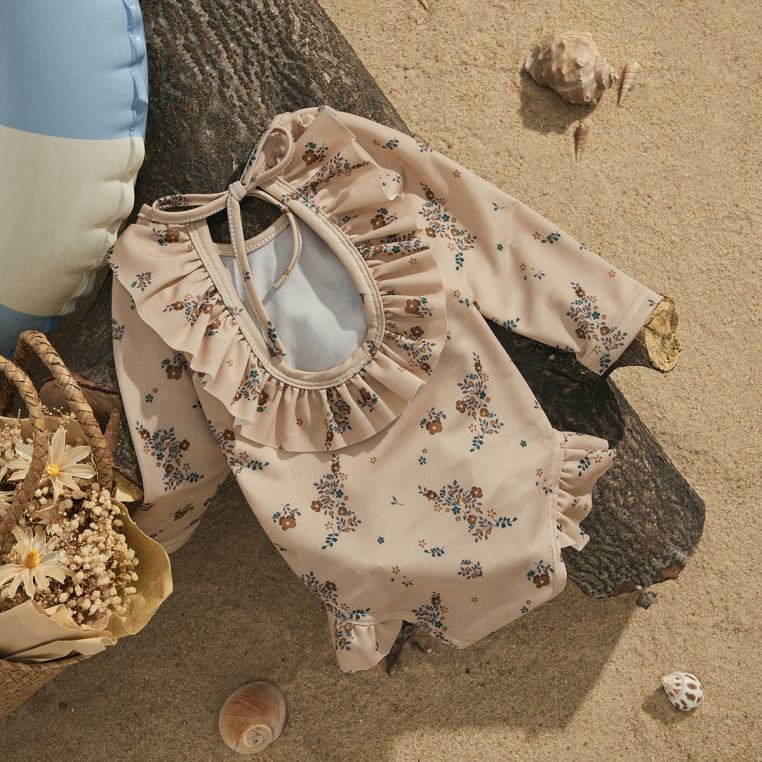 Custom Floral Print Swimwear Long Sleeve 1-4 Years Toddler Baby Kids Girls Summer Sweet Swimsuits Bathing Suit
