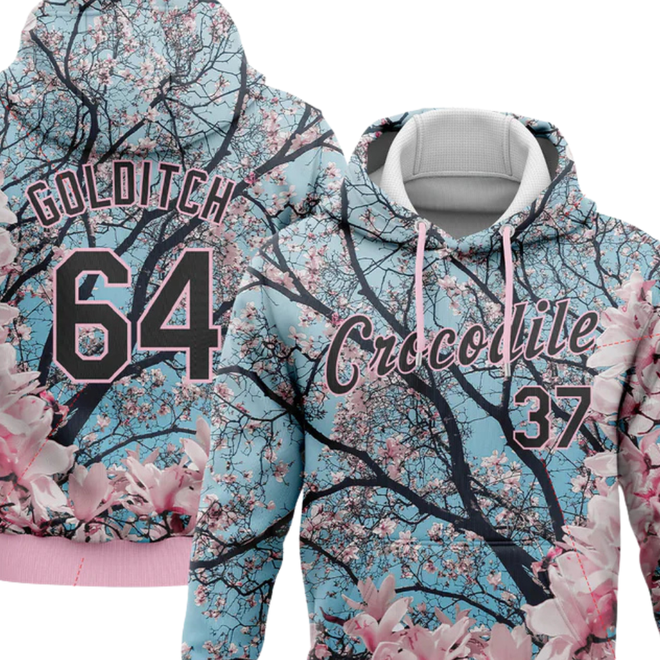 Custom Floral Sublimation Hoodie Pink Blue Blossom Pullover Sweatshirt Personalized Sportswear Custom Logo Design OEM Factory