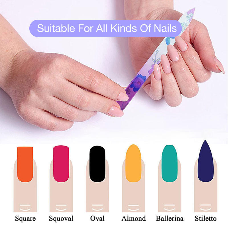 Custom Flower Printed Double-Sided Crystal Glass Nail File Mixed Color Filer with Case for Christmas Gifts