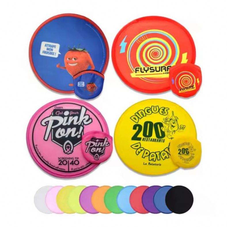 Custom Foldable Hand Fan Foldable Flyer Nylon Round Fold-Up Flying Disc Storage Pouch with Logo