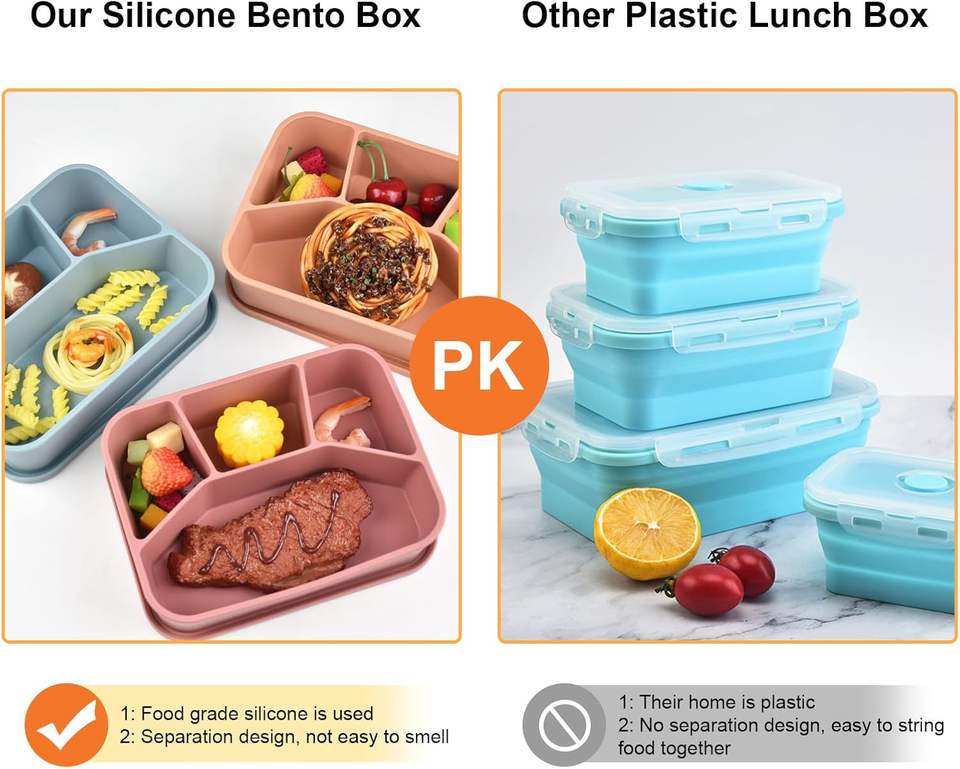 Product:Food Container Bento Foldable Silicone Lunch Box Collapsible With Lid