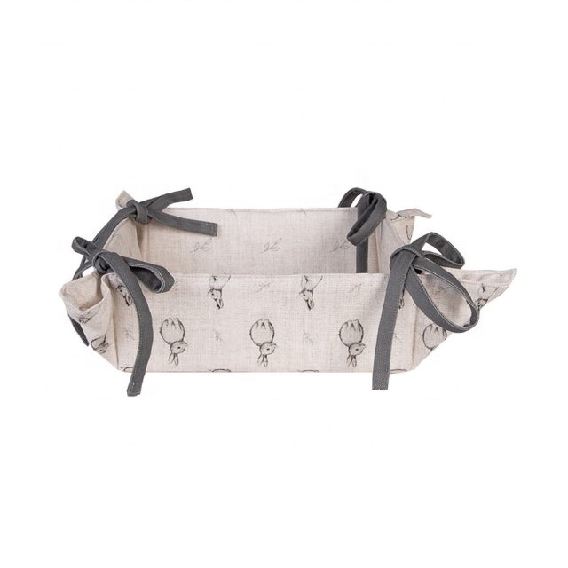 Custom Food Grade Cotton Linen Breadbasket Satin Stitch Embroidered 30x30cm Rectangular Retains Heat Washable Ecofriendly Bakery