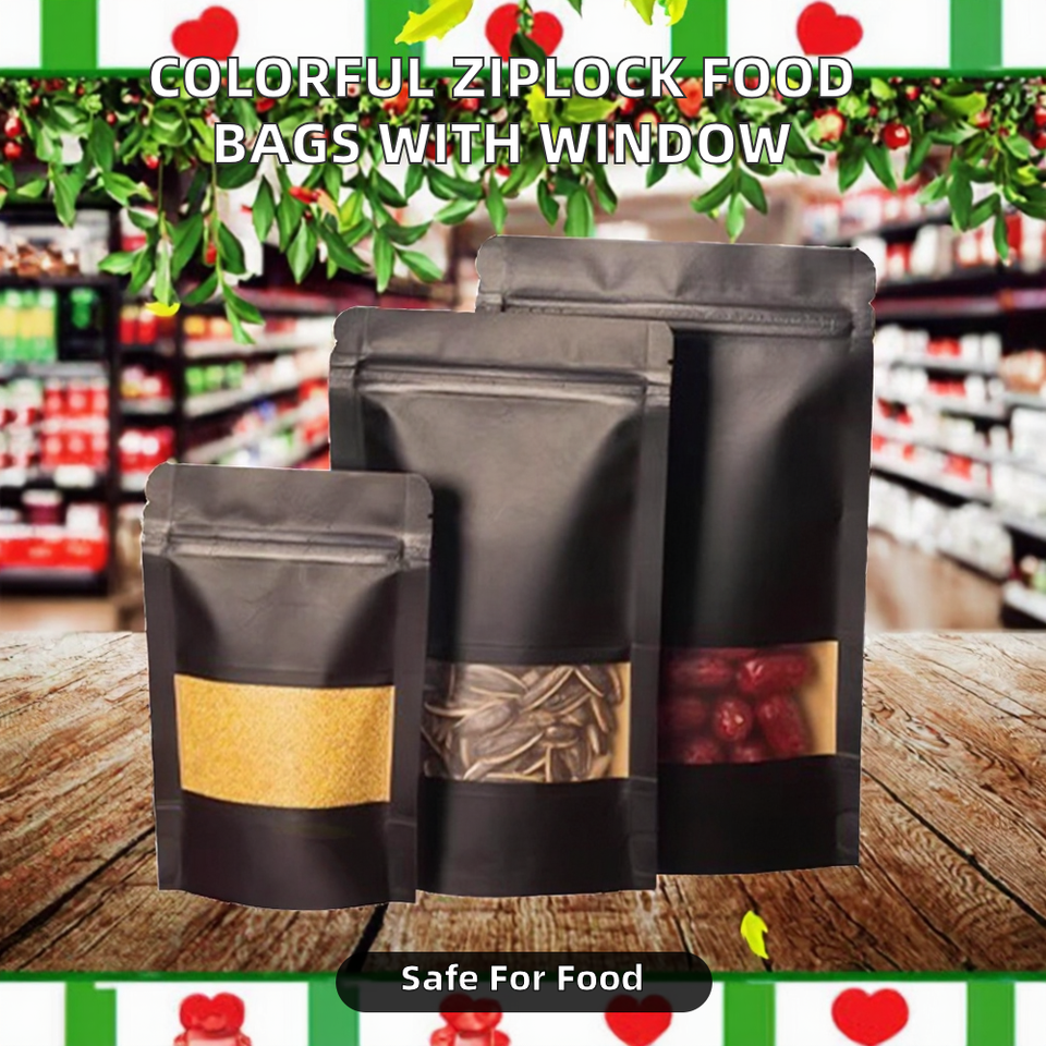 Custom Food Packaging Plastic Bag with Ziplock for Nuts Grain Snack Smell Proof Resealable Stand up Pouch Bags with Clear window
