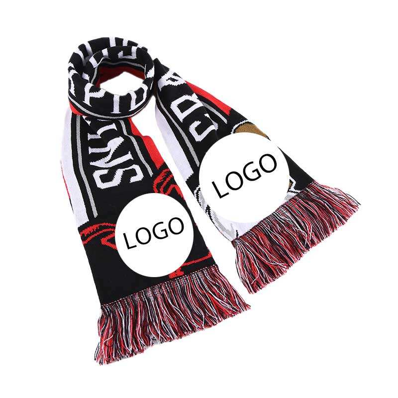 Custom Football Fan Jacquard Scarf Sport Team Soccer Club Knitted Scarves Acrylic Polyester Wholesale Manufacturer