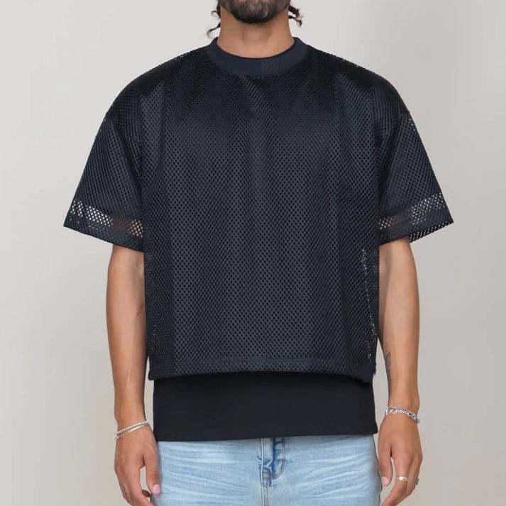 Custom Football Mesh Cropped Boxy t Shirt for Men Cotton Unisex Blank Solid Crew Neck Short Sleeve Tees