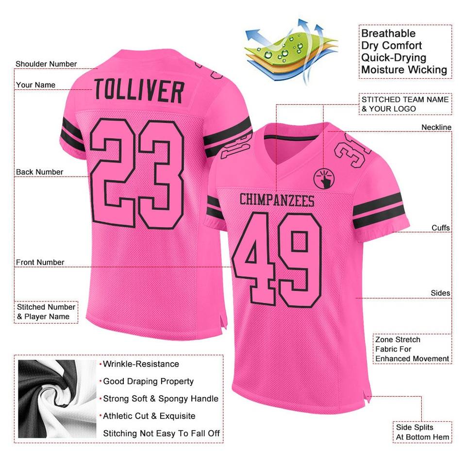 Custom FootballJerseyPremium Quality Soccer Uniform|EM&ODM ManufacturerCustom Pink Pink-Black Mesh Authentic Football Jersey