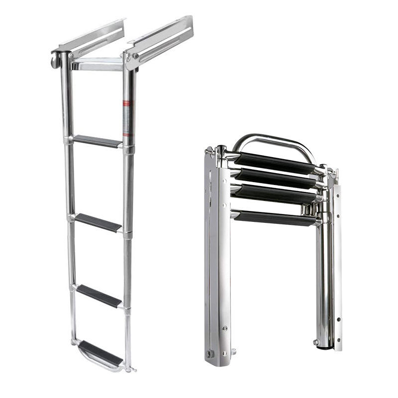 Custom Four-Section Retractable Anti-Slip Stainless Steel Boarding Ladder for Speedboat and Fiberglass Yacht Accessories