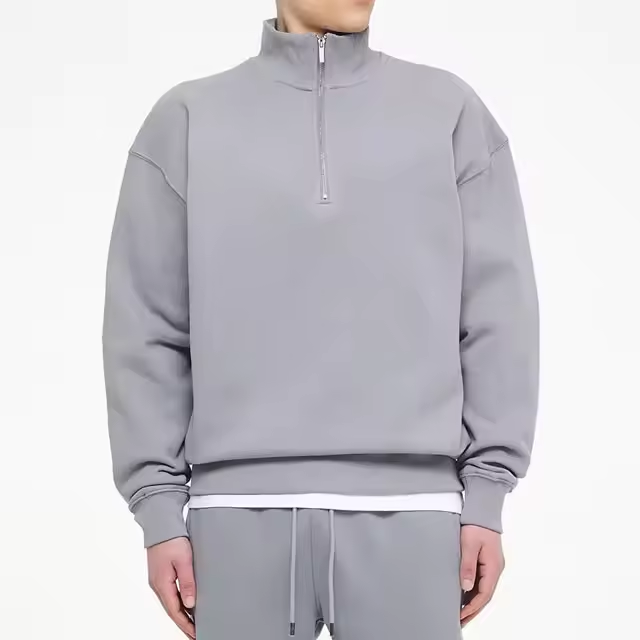 Custom French Terry Quarter Zip Sweatshirt Custom Screen Print Plain Pullover Hoodie 100 Cotton Mens Half Zip Sweatshirts