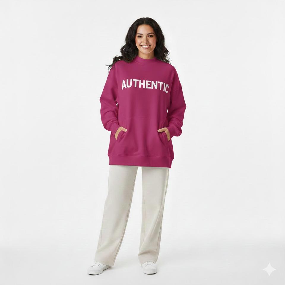 Custom Front Print Winter Women's Mockneck Sweatshirt Heat-Transfer Printing Polyester/Cotton Blend Fleece Long Sleeves Regular