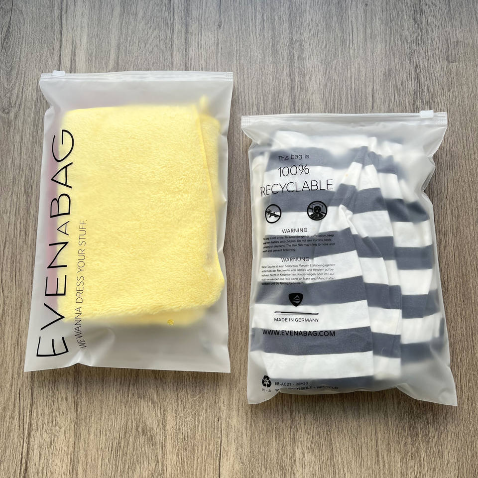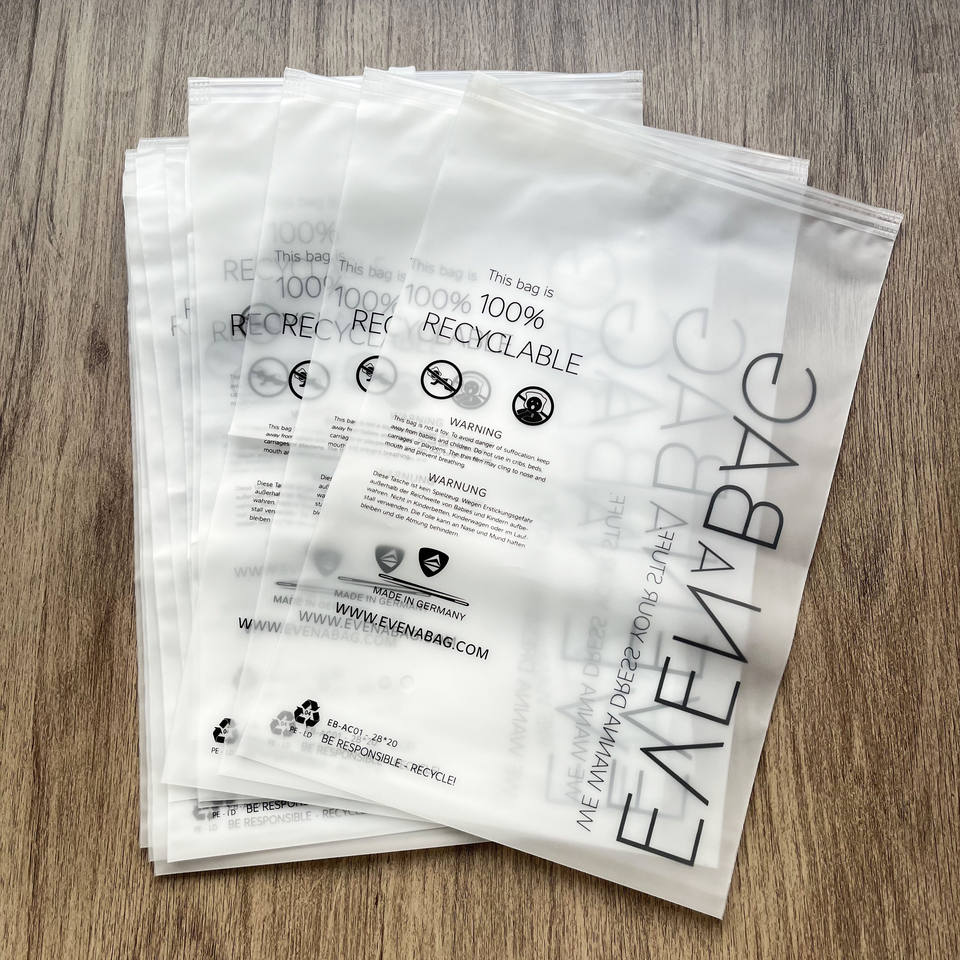 Custom Frosted Zipper Bags with Double-Sided Black Printing - Recyclable Apparel Packaging Pouches