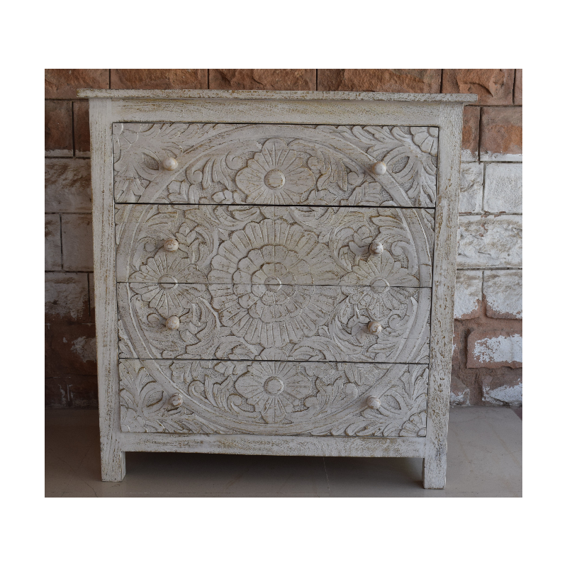 Wooden 4 Carved Drawer Chest Cabinet
