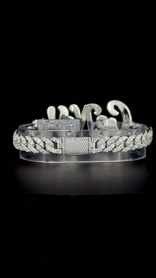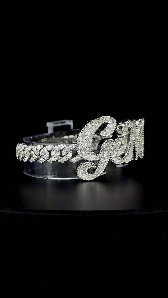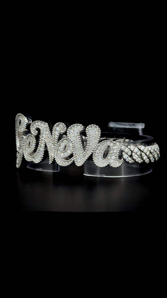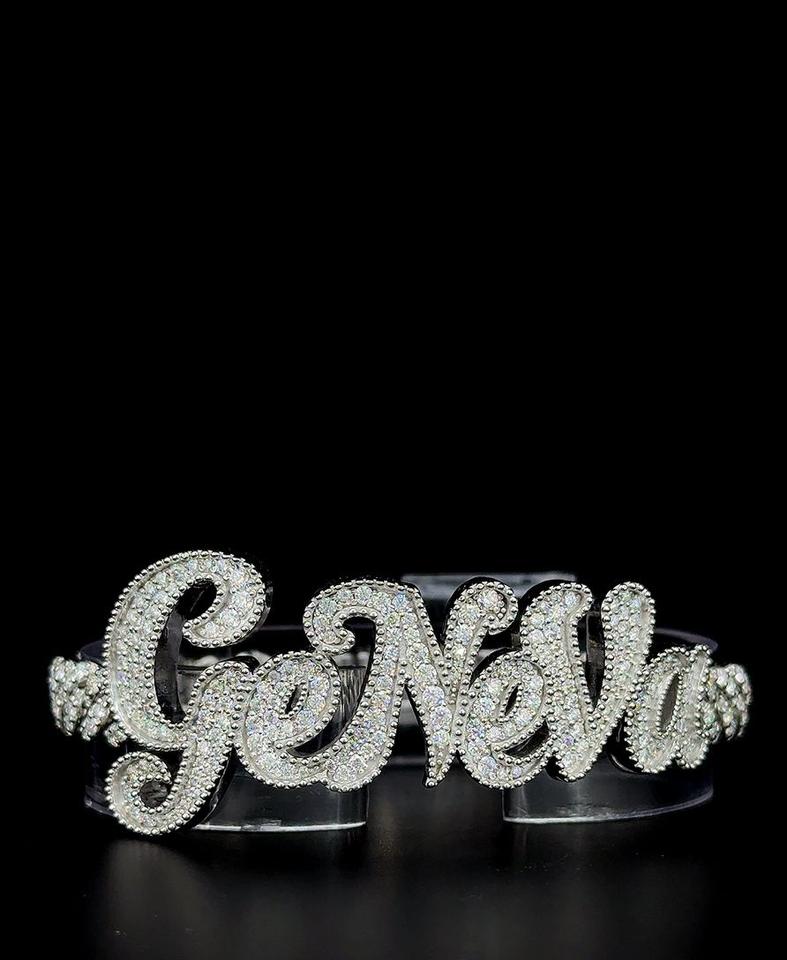 Custom "GENEVA" Iced Out Name Bracelet 925 Sterling Silver VVS Moissanite Diamond Hip Hop Cuban Bracelet for Men Women