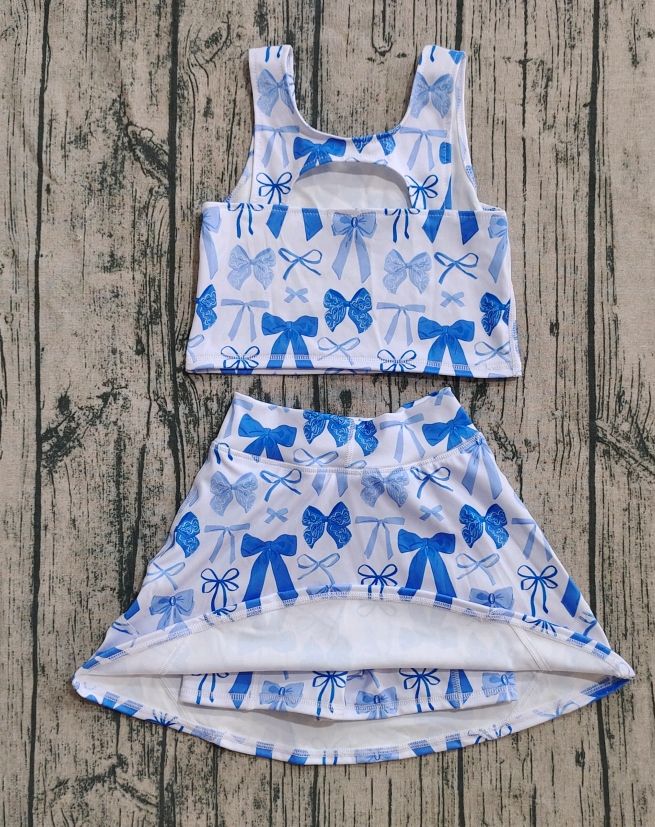 Custom Game Day Girls Clothing Sets-Football Team Designs Crop Top Shorts Liner Outfits for Athletic Little Girls-Tennis Clothes
