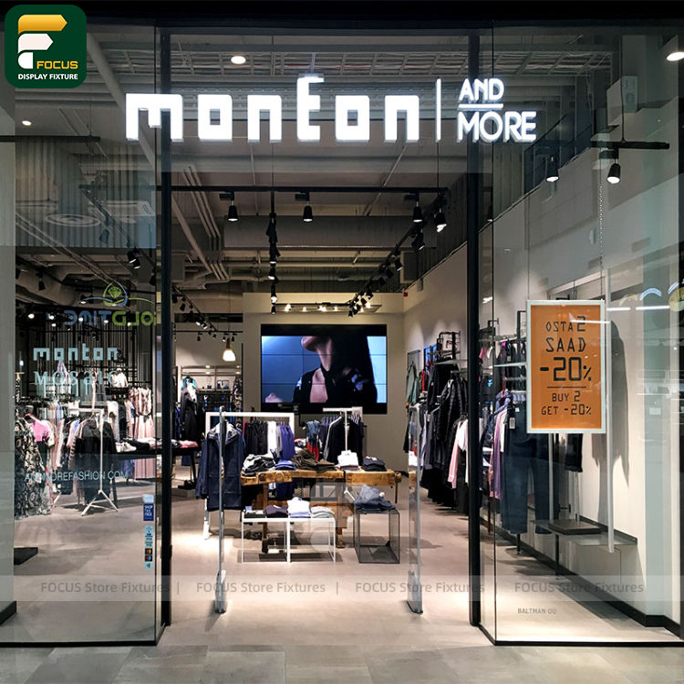 Custom Garment Boutique Clothing Rack Display Cabinet Wall Panel Cashier Counter Lighting Showcase Fixture