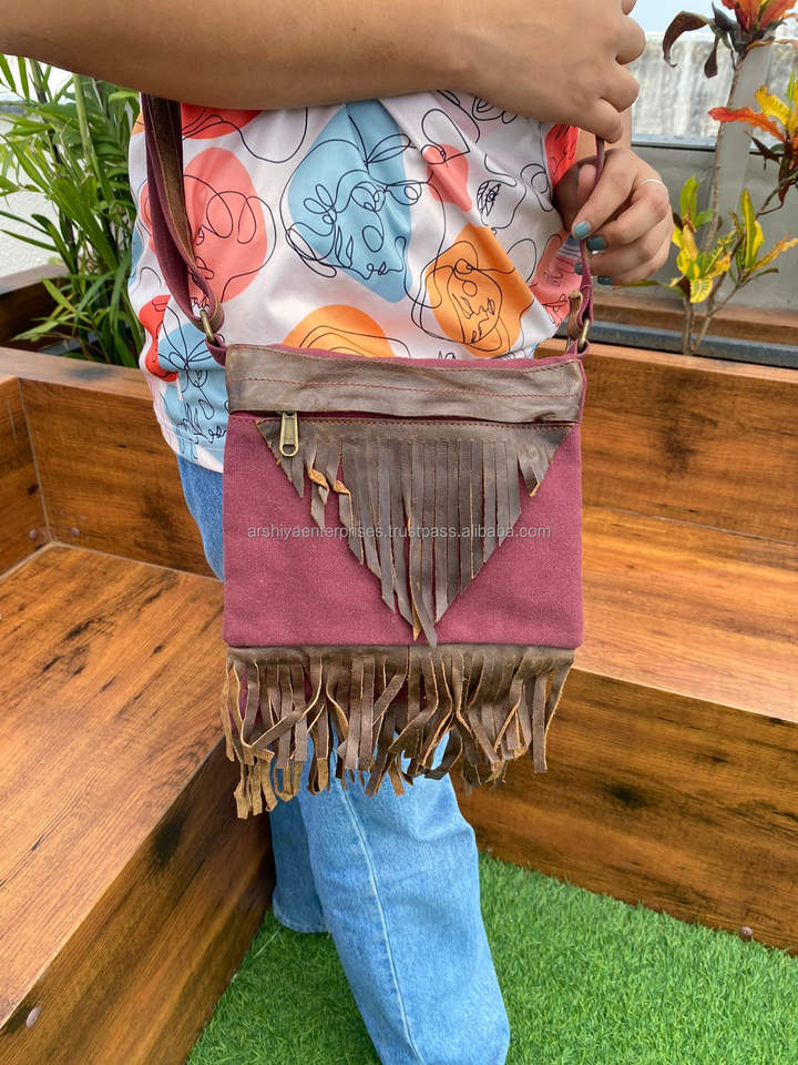 Custom Genuine Leather Canvas Water Resistant Purse for Women's Western Luxury Cowhide Leather Crossbody Fringe Shoulder Bags