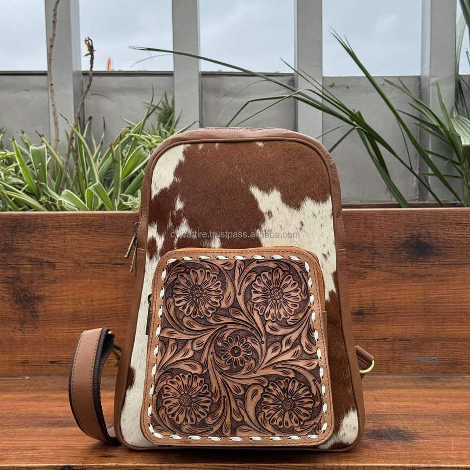 Custom Genuine Leather Chest Bag with Hand Tooled Floral Design Hair On Cowhide Western Fanny Packs Crossbody Bag for Women