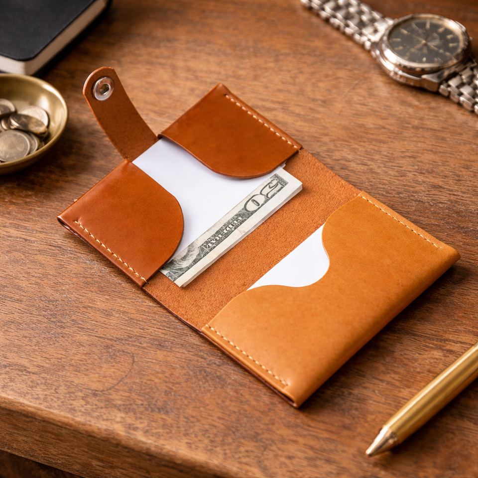 Custom Genuine Leather Minimalist Business Card and Money Holder