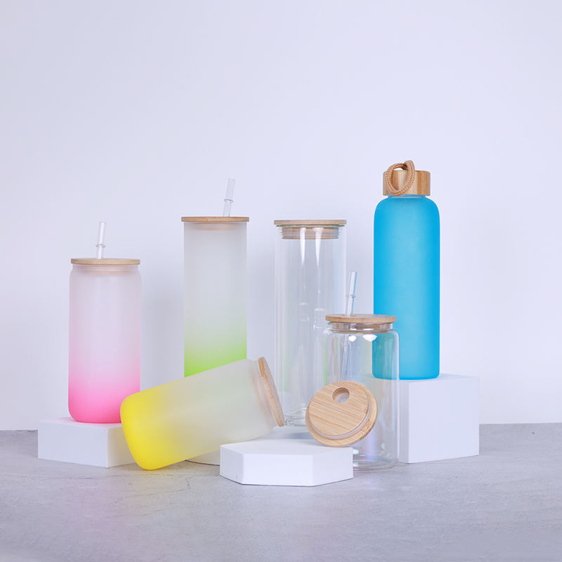 Custom Glass Cups 16oz 18oz 20oz Can Shaped Drinking Beer Glasses Cup for Iced Coffee with Bamboo Lids and Straws