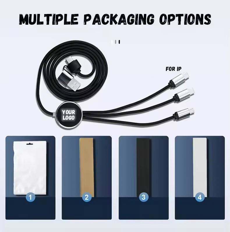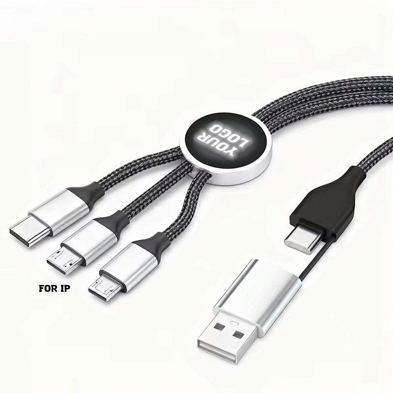 Custom Glow Multi Phone Charger Fast Charging Nylon Universal USB PD 3 5 in 1 Led Light up logo Cable for Promotional Gifts