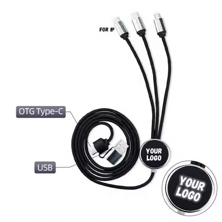 Custom Glow Multi Phone Charger Fast Charging Nylon Universal USB PD 3 5 in 1 Led Light up logo Cable for Promotional Gifts