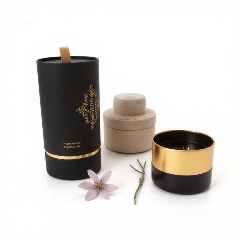 Custom Gold Hot-stamp Logo Luxury Circle Cardboard Round Box Package Recyclable Craft Paper Tube for Candle Jar Packaging Boxes