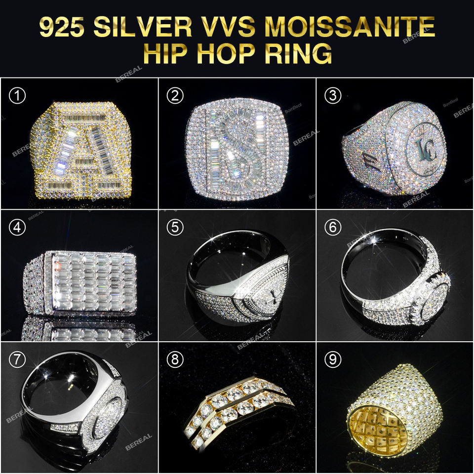 Custom Gold Plated Moissanite Hip Hop Ring Iced Out Round Brilliant Cut Vvs Diamond 925 Silver Fine Jewelry Rings For Men Women
