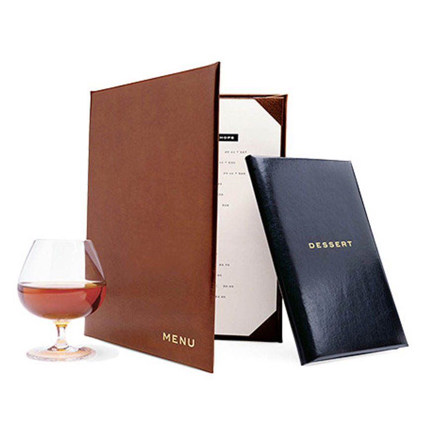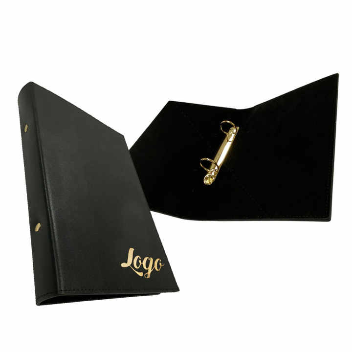 Custom Gold Printed logo High Quality Ring Binder Leather Menu Holder Hard Menu Cover