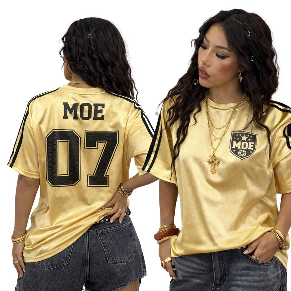 Custom Gold Women Oversize Football Jersey Short Sleeve Streetwear Sport T Shirt Wholesale American Football Jersey OEM Supplier