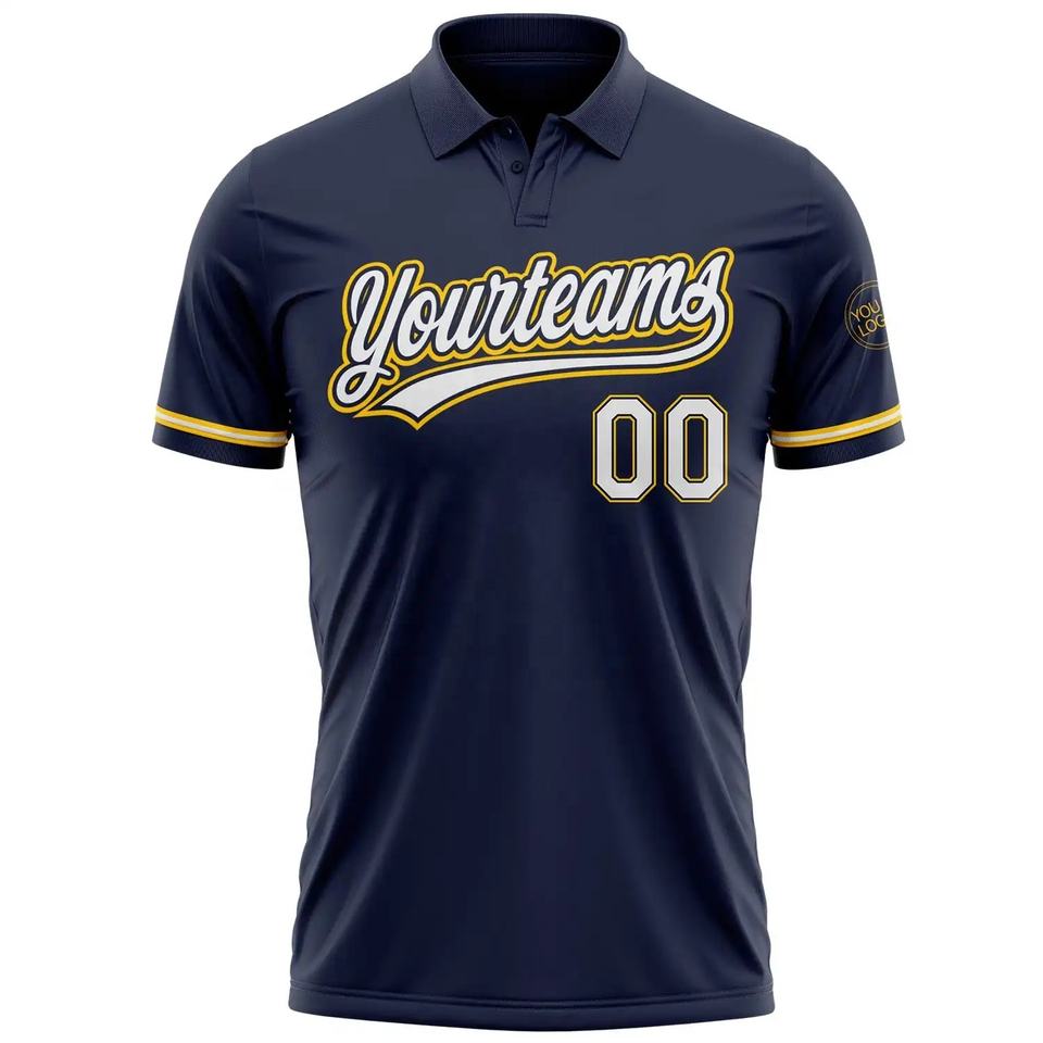 Custom Golf Shirts Quick Dry Adult Blue Sublimation Name Number White Printed Custom Logo Breathable Sports Shirt High Quality
