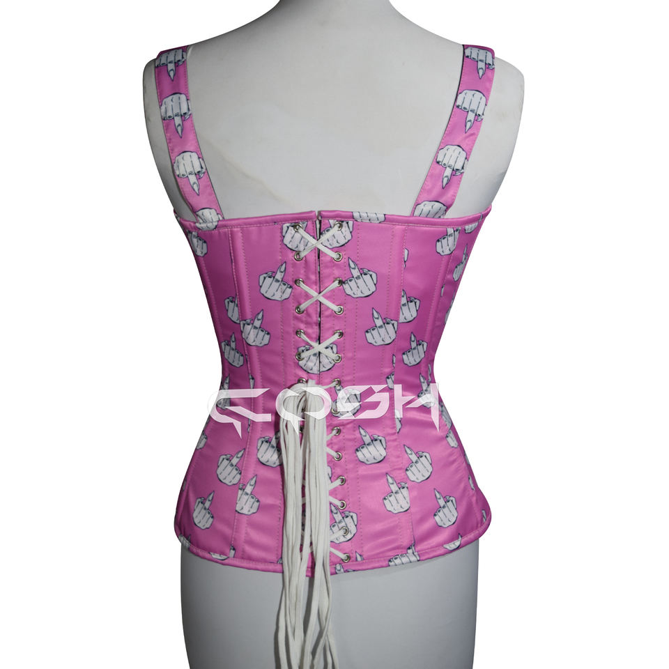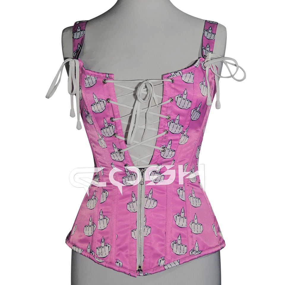 Custom Graphic Print Pink Corset Top With Zipper and Lace up Straps