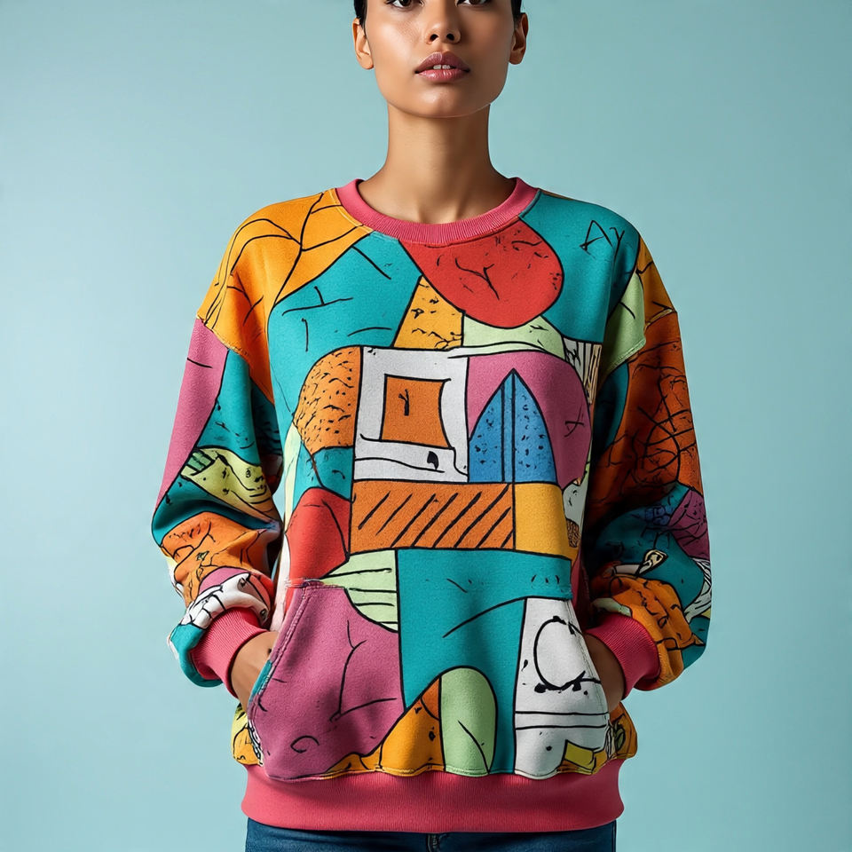 Custom Graphic Print Sweatshirts Sportswear Oversize Sweat Shirts Slim Fit Graphic Print Jogger Sweater Ladies