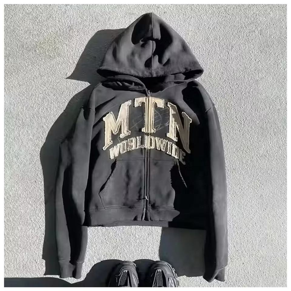 Style:Fashion, Vintage, Sporty, Hip Hop, Oversized, STREETWEAR, Unisex, HIGH STREET, Pullover, zipper-up