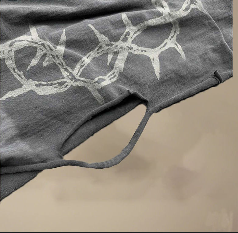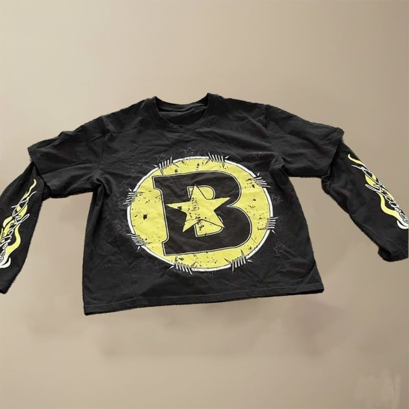 Custom Graphic Ripped Long Sleeve T Shirts for Men Vintage Acid Wash Shirts Waffle Distressed Double Layer Long Sleeve T-shirt