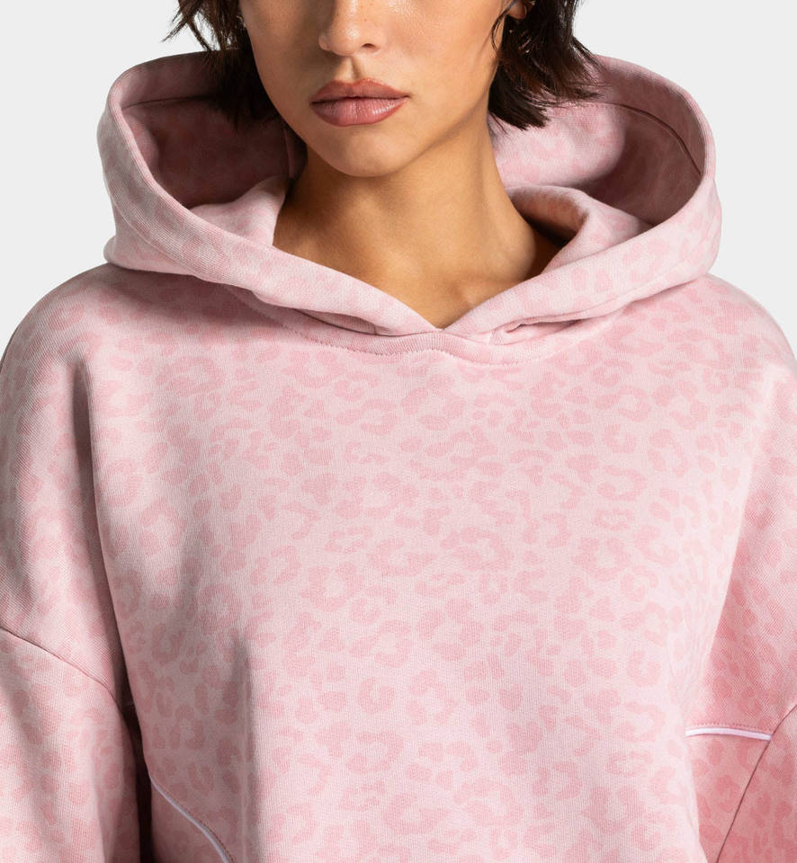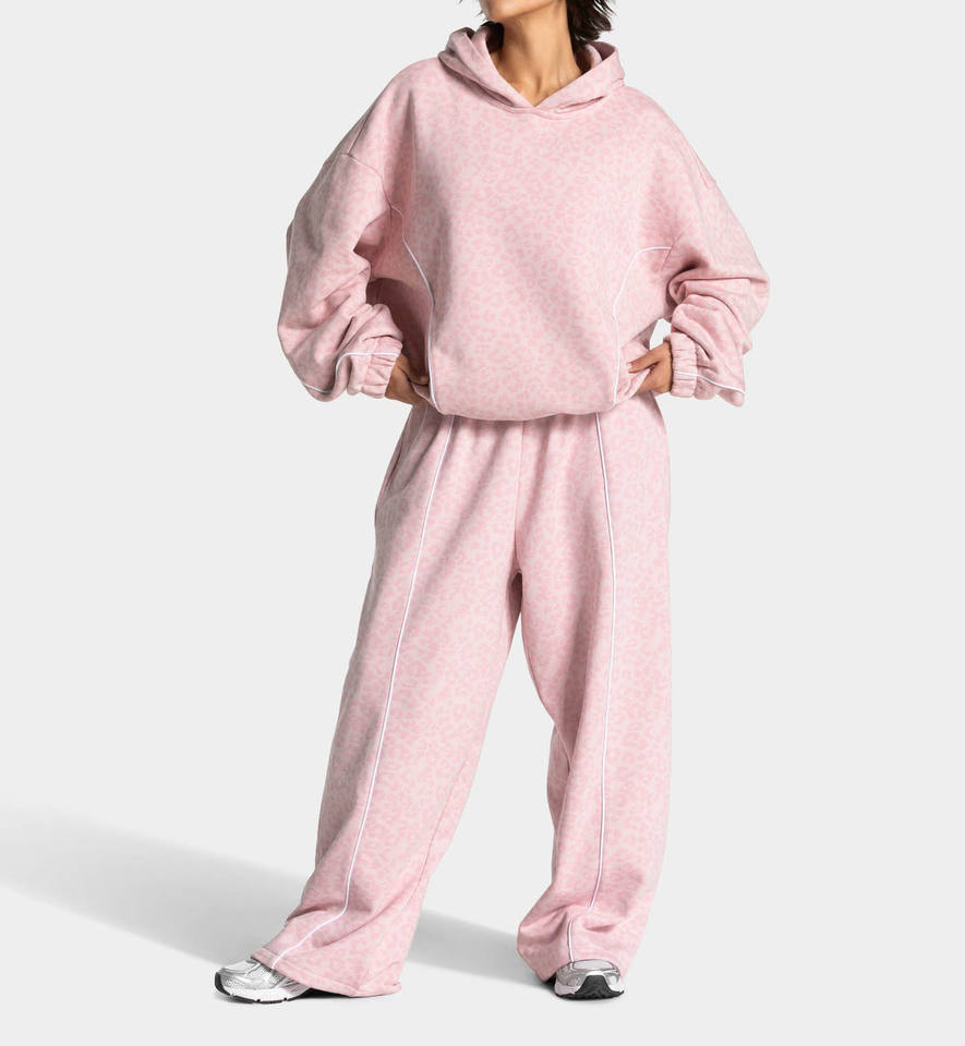 Custom Graphite Leopard Print Oversized Contrast Pipping Women Tracksuit Pullover Contrast Lining Hoodie & Jogger For Women's