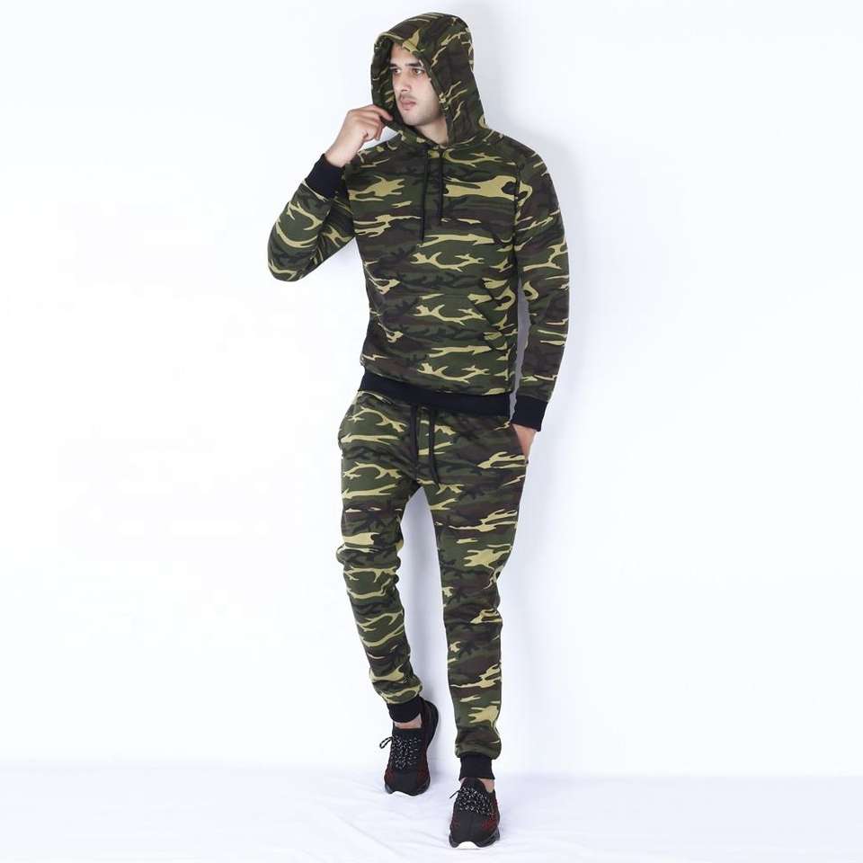 Custom Green Camouflages Tracksuit Custom Sweatsuit Jogger Hoodie Private Label Camo Track Jogging Sweat Suit Men