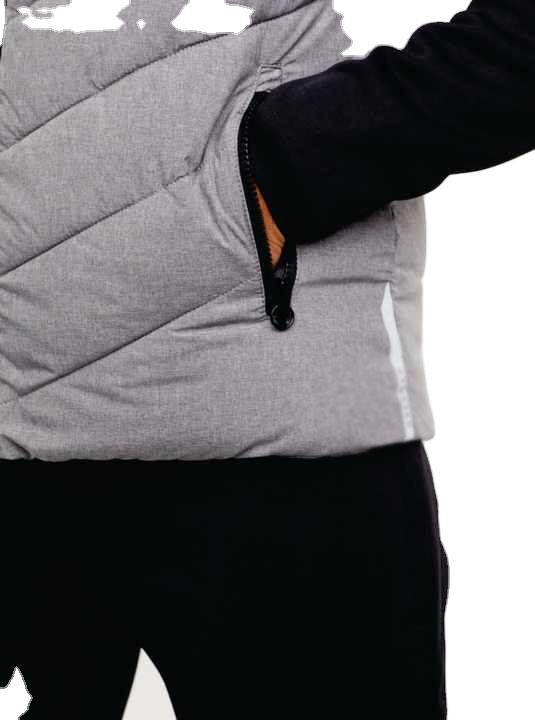 Custom Grey Coated Hooded Patchwork Puffer Jacket 100% Polyester Regular Sleeve Autumn Jacket with Zip Pockets OEM Manufacturer
